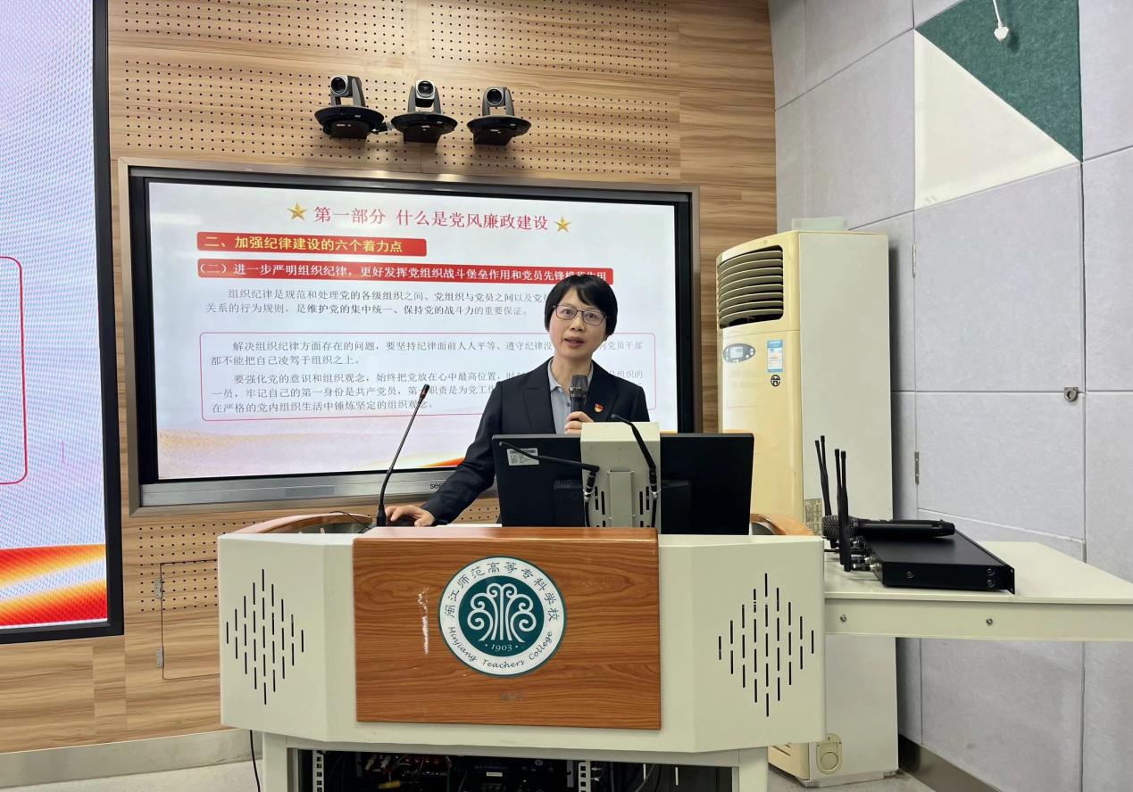 校党委委员、纪委书记陈群以《新时期如何加强高校党风廉政建设》为主题,以党风廉政建设关键词解读为切入点,结合习近平总书记关于党风廉政建设重要论述,深入浅出地阐述了什么是党风廉政建设、为什么要加强高校党风廉政建设和如何加强高校党风廉政建设,并通过自己多年纪检监察工作经验和办案积累的大量鲜活的案例进行“以案释纪”,对营造风清气正的育人环境作了详细阐述。