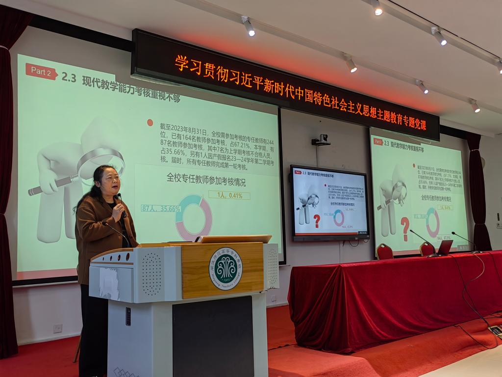 校党委副书记林旻以《数字变革推动教育强国建设——认真贯彻习近平总书记关于教育的重要论述》为主题,从“新定位:教育数字化的要求”“新使命:教育数字化的提质”“新担当:教育数字化的作为”等三个方面对党的二十大首次将“教育数字化”写进报告,提出“推进教育数字化,建设全民终身学习的学习型社会、学习型大国”作了详细阐述。