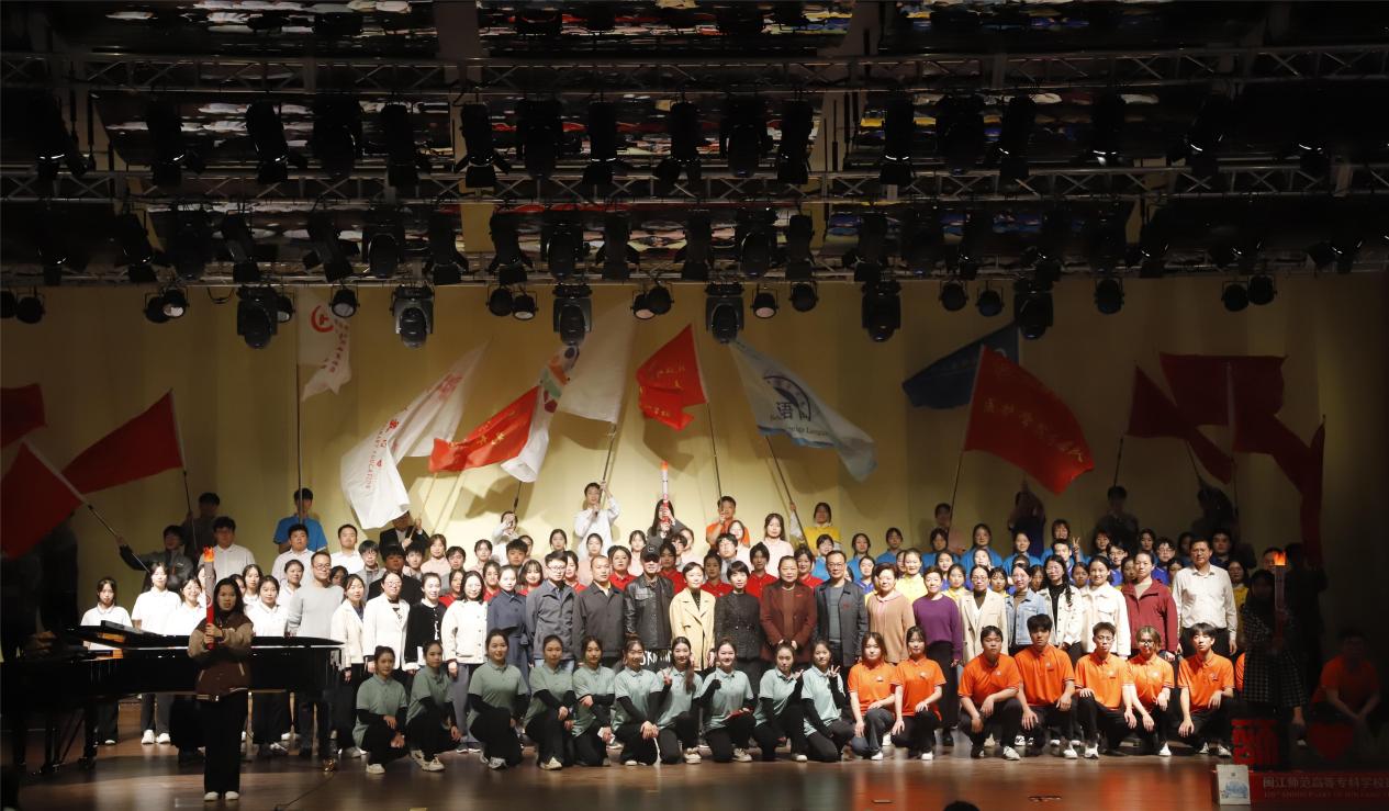 活动伊始,附属实验小学小繁星合唱团带来的表演曲目《茉莉花》《爱的传递》,唱响开场号角。比赛现场,来自9个二级学院的合唱队紧扣主题,他们演唱必选曲目《走进闽江师专》和一首自选曲目“《灯火里的中国》《瑶山夜歌》《如愿》……”,舞台上大家融合专业特色精心设计,为观众献上一场视听盛宴,淋漓尽致地展现出闽师学子们的昂扬精神面貌。