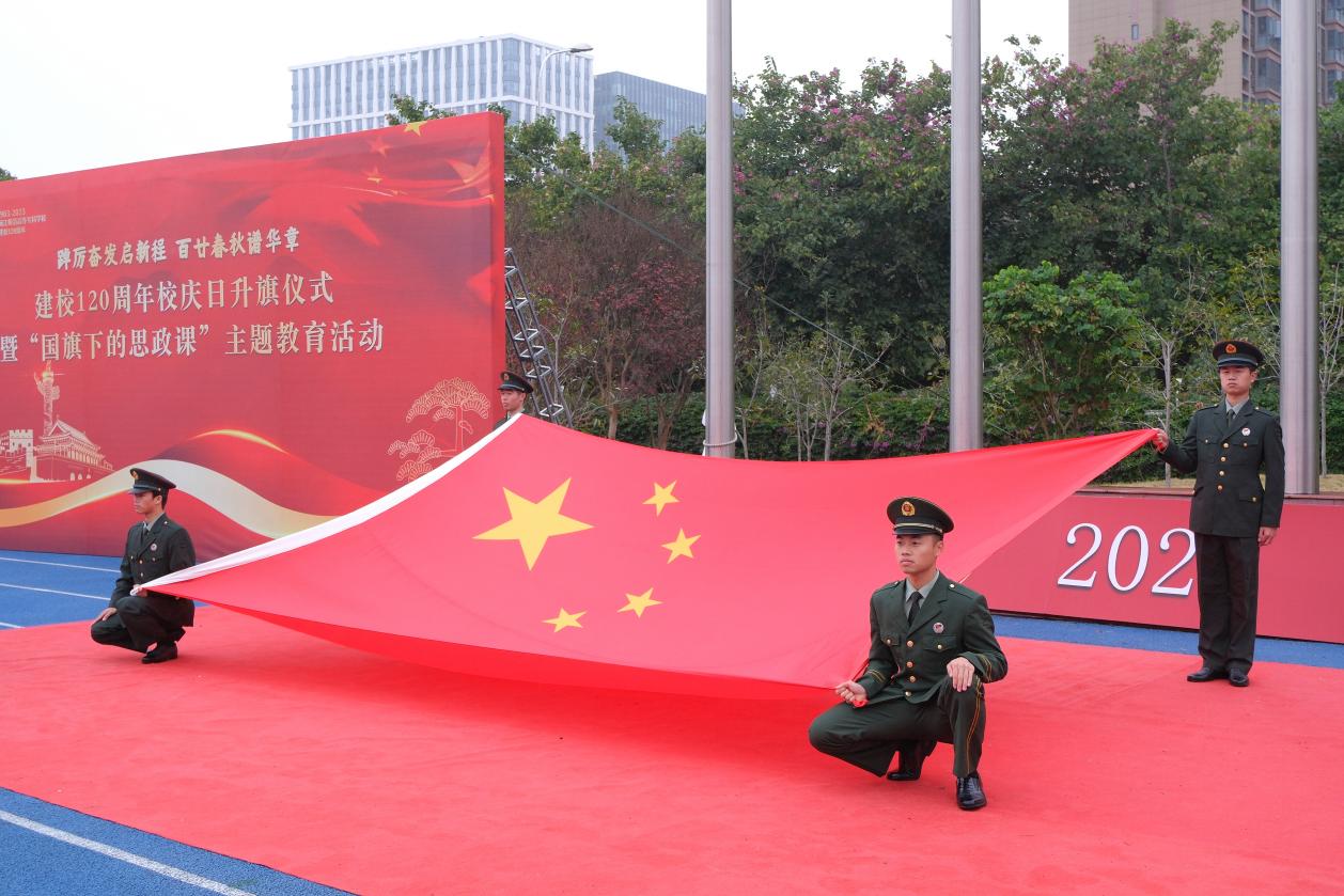 女子国旗班承担建校120周年校庆日升旗任务