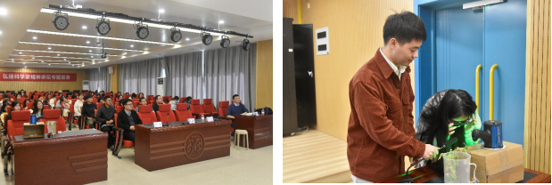 12月8日上午,闽江师专120周年校庆活动“弘扬科学家精神讲坛”暨第二十一届福州市科协年会大赢家体育app下载分会场活动迎来了第2场讲座。讲座邀请了福建农林大学的陈栩教授开展“种豆得瓜,走近转基因”的科普讲座。会议由小学教育学院科学教师卓文豪主持,副院长李骏、小学教育学院师生参与讲座。