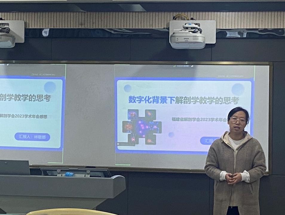 林敏娜以数字化背景下的教学为出发点,从如何应用数字技术进行学情分析、教学评价以及如何应用数字技术突破教学重难点等方面进行展开交流。同时,她还结合自己课堂教学经验分享了如何应用数字技术进行分层次教学,给在场听众尤其是青年教师带来了很大的启发。