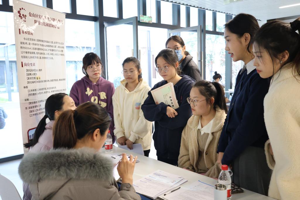 本次招聘会邀请了46家幼儿园和培训机构,为毕业生提供了300多个岗位。在招聘区,每家招聘展位前都挤满了咨询的学生,各用人单位围绕着人才培养、发展前景、薪资待遇等方面为毕业生进行介绍,并耐心解答毕业生的问题。现场的学院老师也为毕业班学生提供了简历指导、面试技巧等服务,鼓励学生积极求职应聘,突破自我。