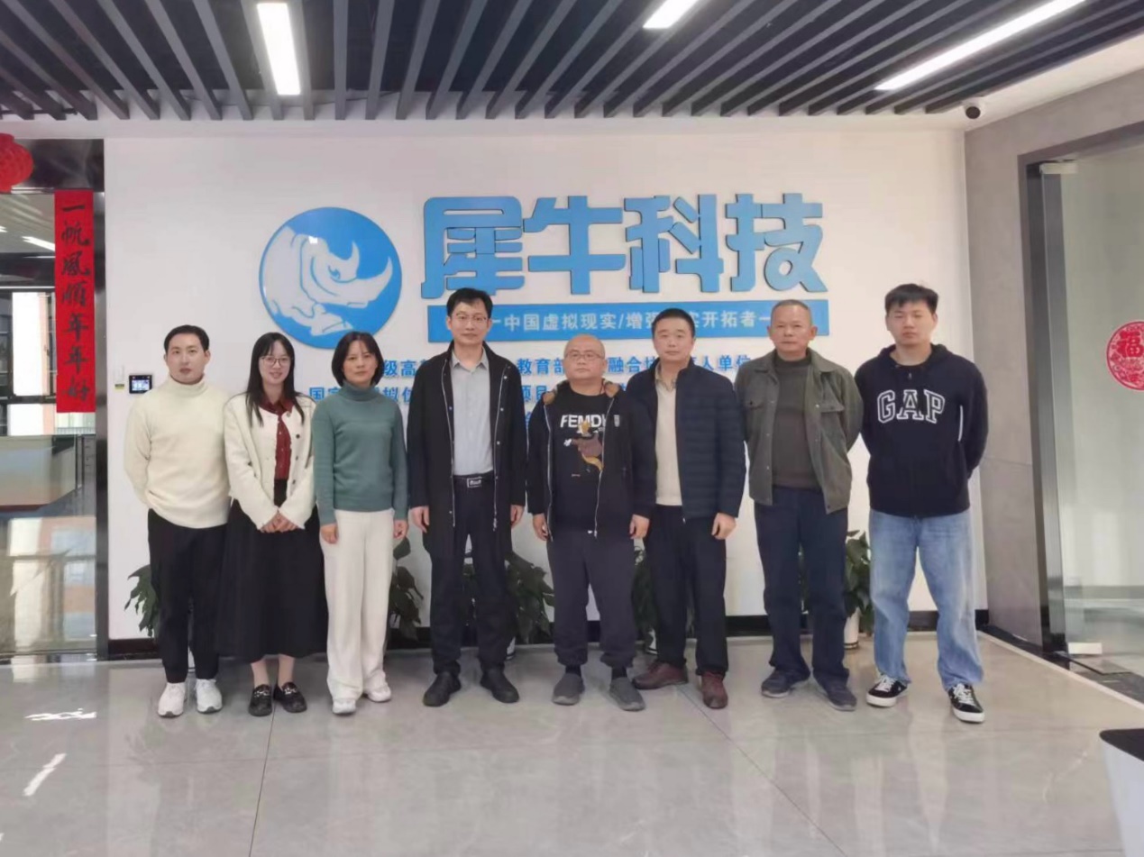 在犀牛科技有限公司,总经理刘向群介绍了公司的发展情况、组织架构、业务内容、虚拟仿真项目建设成功案例等情况。在交流座谈中,大赢家体育app下载一行了解了企业在产教融合方面取得的成果,并就企业人才需求情况、校企资源共享、产教融合等方面工作进行交流,对校企合作进行虚拟仿真项目开发进行了讨论。