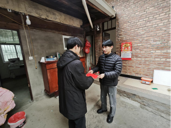 为进一步宣传国家资助政策,提升资助育人工作的实效性,智能制造学院开展了寒假家庭经济困难学生家访活动,1月15日,辅导员魏建辉、林家森、季昌文走进家庭经济困难学生家里,搭建家校联络桥梁,加强家校沟通。