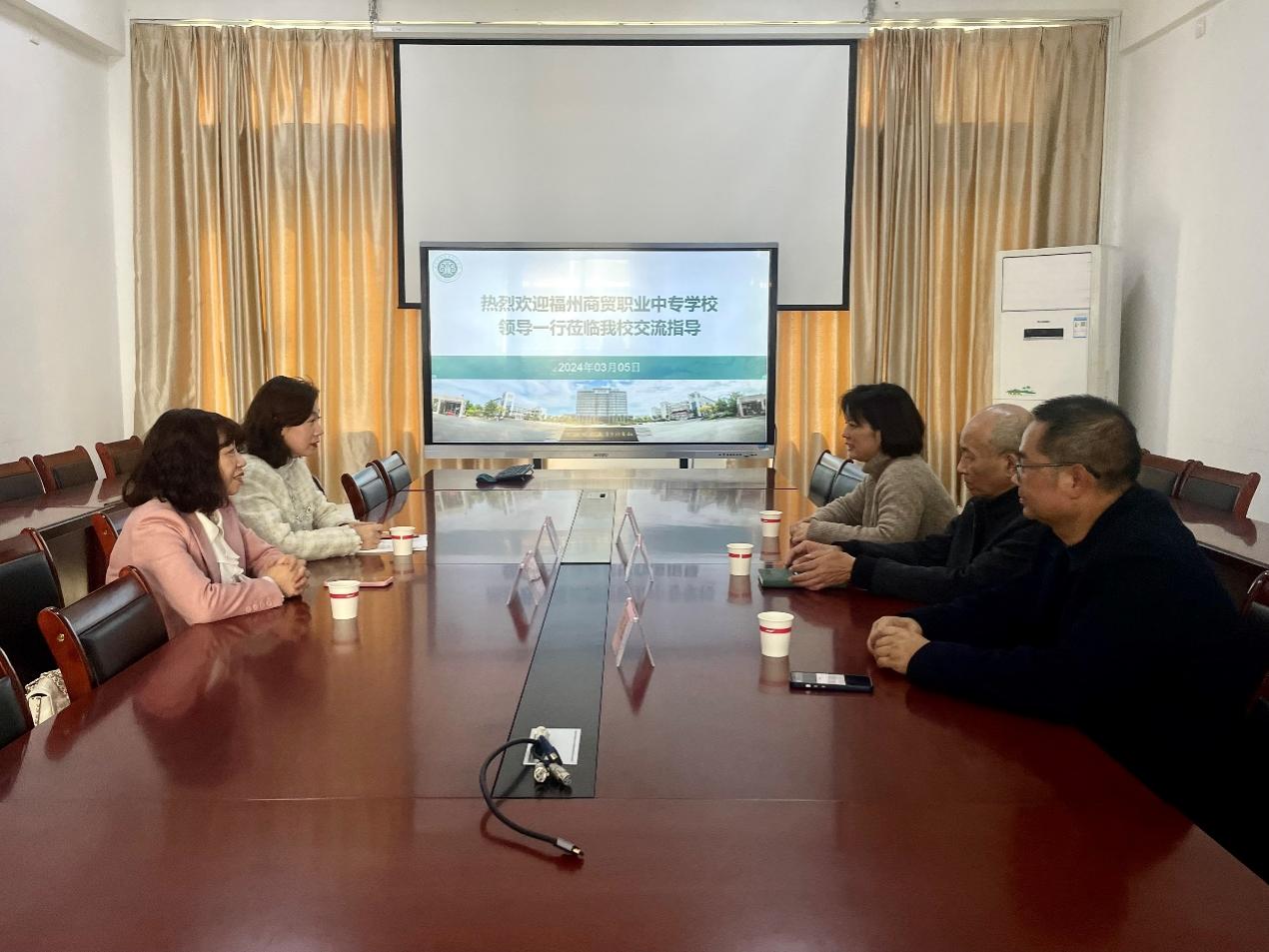 陈欣对福州商贸职业中专一行表示热烈欢迎,他希望双方以此次座谈为契机,开展深度交流,推动学校事业高质量发展再上新台阶。在随后的交流会上,双方分别介绍了各自的办学概况、办学特色及相关专业办学情况,重点对“3+2”合作办学的专业在人才培养方案、课程衔接、教学管理、招生计划等事宜进行洽谈交流。