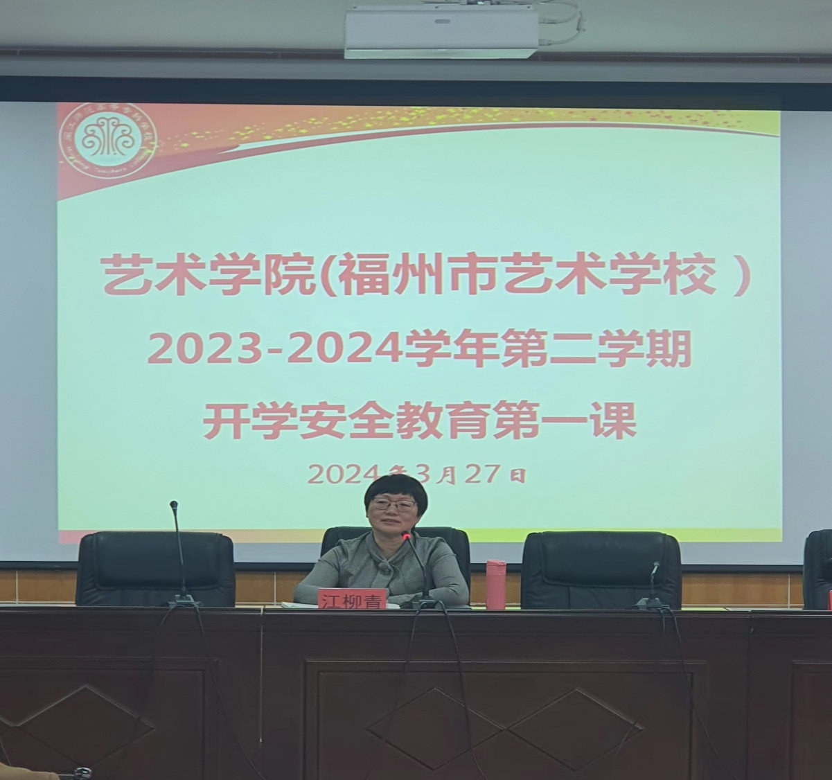 3月27日下午,艺术学院(福州市艺术学校)在甘蔗校区办公楼五楼会议室,开展“开学安全教育第一课”活动。艺术学院党委书记江柳青,副院长林理杰、陈志勇,各部门负责人、班主任及师生代表出席。