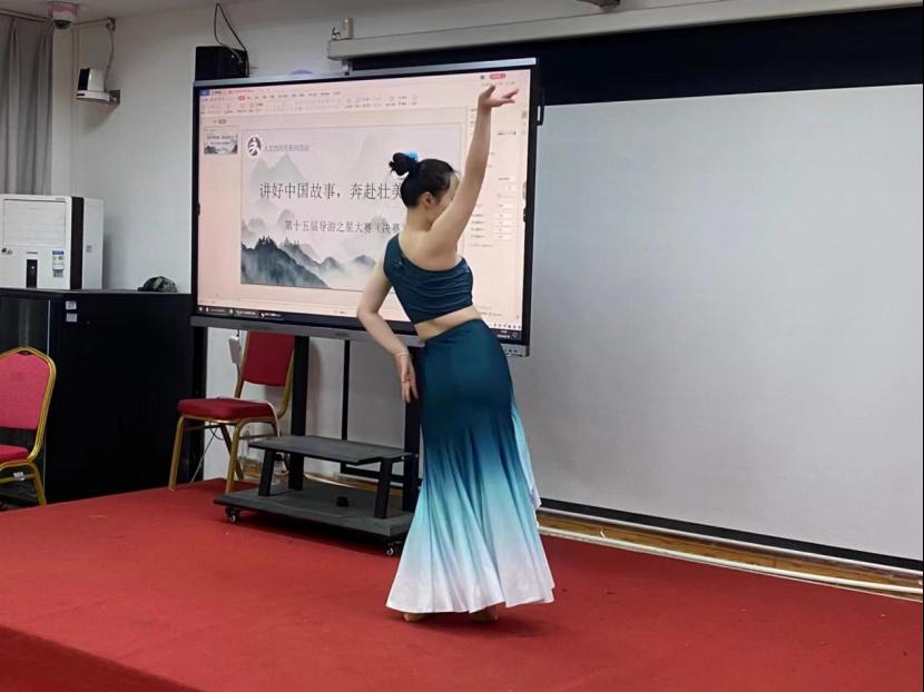 比赛分为自选景点导游讲解、现场导游词创作讲解和才艺运用三个环节。选手们在台上声情并茂地进行导游讲解,将课堂上所学习的专业知识与讲解技巧相结合,向现场的评委老师及观众展示了祖国大好河山的秀美风光。才艺展示环节更是百花齐放,选手们的精彩表演给现场的评委老师以及观众们都留下了深刻的印象。