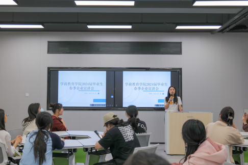 4月19日,学前教育学院在产创楼二楼207举办2024届毕业生春季企业宣讲会。学院党委副书记杨美玲、辅导员以及毕业班全体学生参加本次活动。会议邀请了新知教育和乐多教育两家企业来校宣讲。