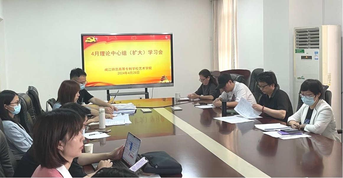 4月23日上午,艺术学院党委书记江柳青主持召开院党委理论中心组(扩大)会议,传达学习习近平总书记近期重要讲话精神,研究学院贯彻落实意见,部署开展党纪学习教育。