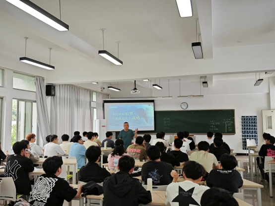 4月25日下午,智能制造学院党总支书记李扬新在仓山校区3号楼501教室为2023级新能源汽车技术专业2班学生讲授形势与政策课。