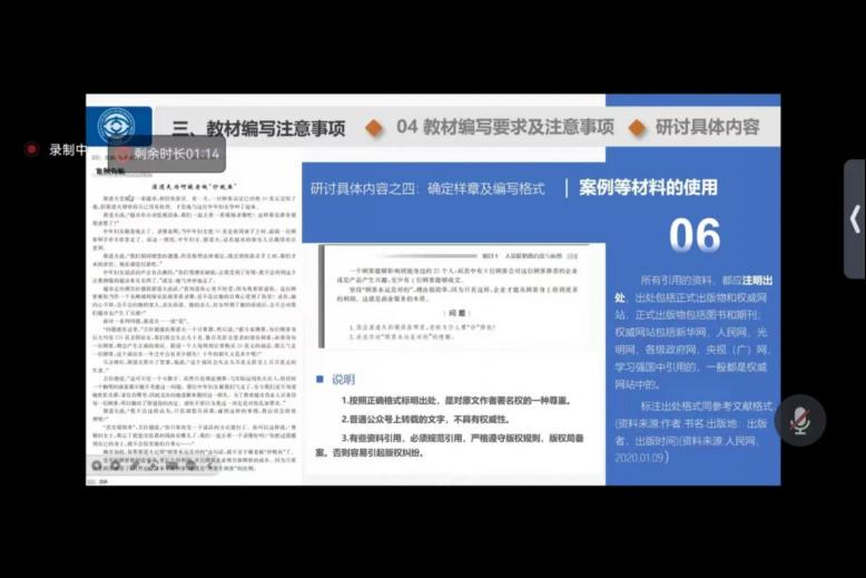 图2:大连理工出版社欧阳编辑介绍教材编写注意事项