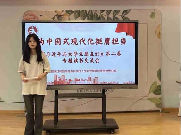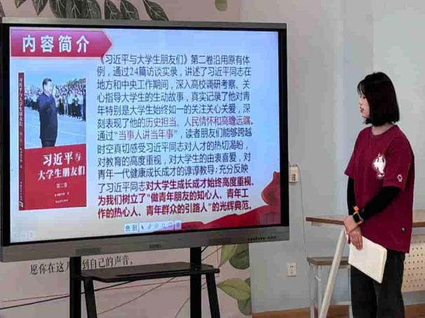 本次活动以一人讲多人评的方式,通过学习《习近平与大学生朋友们》第二卷的24篇访谈实录,感悟习近平总书记对青年寄予的热切期望,为同学们树立“做青年朋友的知心人、青年工作的热心人、青年群众的引路人”的光辉典范。在活动过程中,同学们结合典型榜样故事和新时代背景,围绕书籍内容进行集中学习,并分享讨论心得体会及对“新时代好青年”的理解。活动最后,同学们纷纷表示,将时刻牢记习近平总书记的殷切嘱托,肩负起为中国式现代化挺膺担当的青春责任。