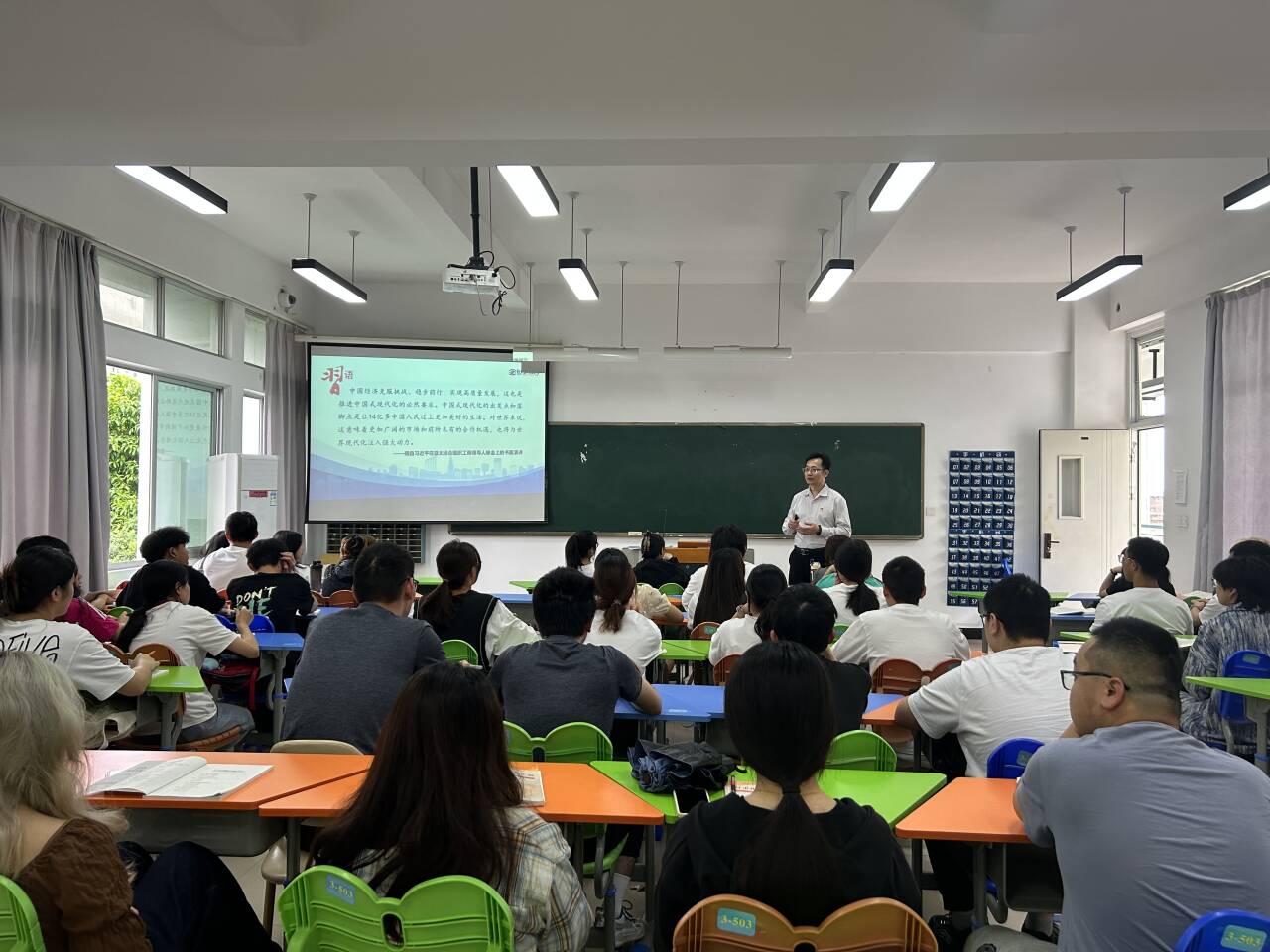 朱发财以《中国经济高质量发展扎实推进》为主题,通过时事热点导入,结合自身经历,围绕回升向好韧性强、全面长远辩证看、多措并举提质量三部分内容,运用丰富案例、视频使学生认识到了当前我国经济的深刻变化,明确了实现高质量发展的重要意义,增强对我国经济高质量发展的信心。