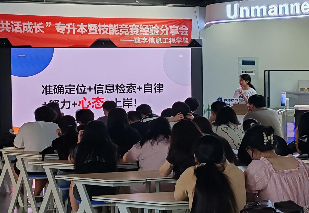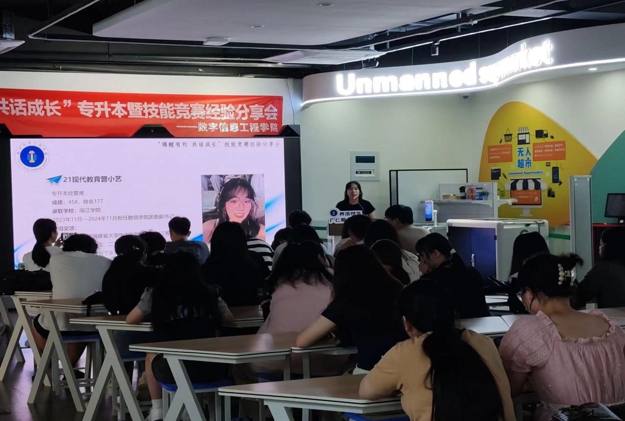 为帮助22、23级学生更好地了解专升本考,近日,数学信息工程学院在仓山校区2-305教室举办“锦鲤有约,共话未来”专升本暨专业技能竞赛经验分享会。学院2021级升学学生代表、2021级技能竞赛获奖学生代表作为分享嘉宾,向2022级、2023级在校生分享经验,交流心得。