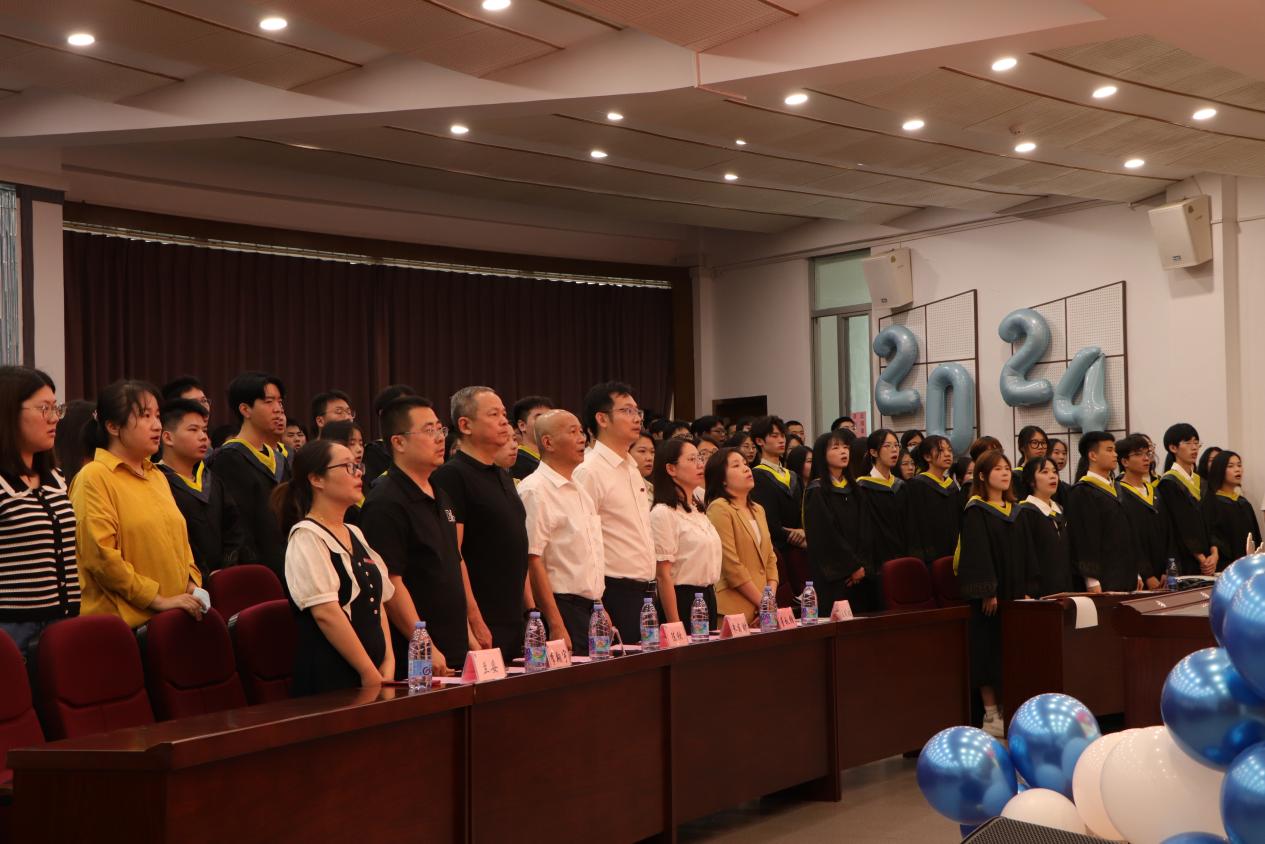 典礼伊始,全体与会人员庄严肃立,奏唱国歌。一段《人生海海》毕业纪念视频,回顾了毕业生们在校期间的点点滴滴,表达了学院对毕业学子的真挚祝福。