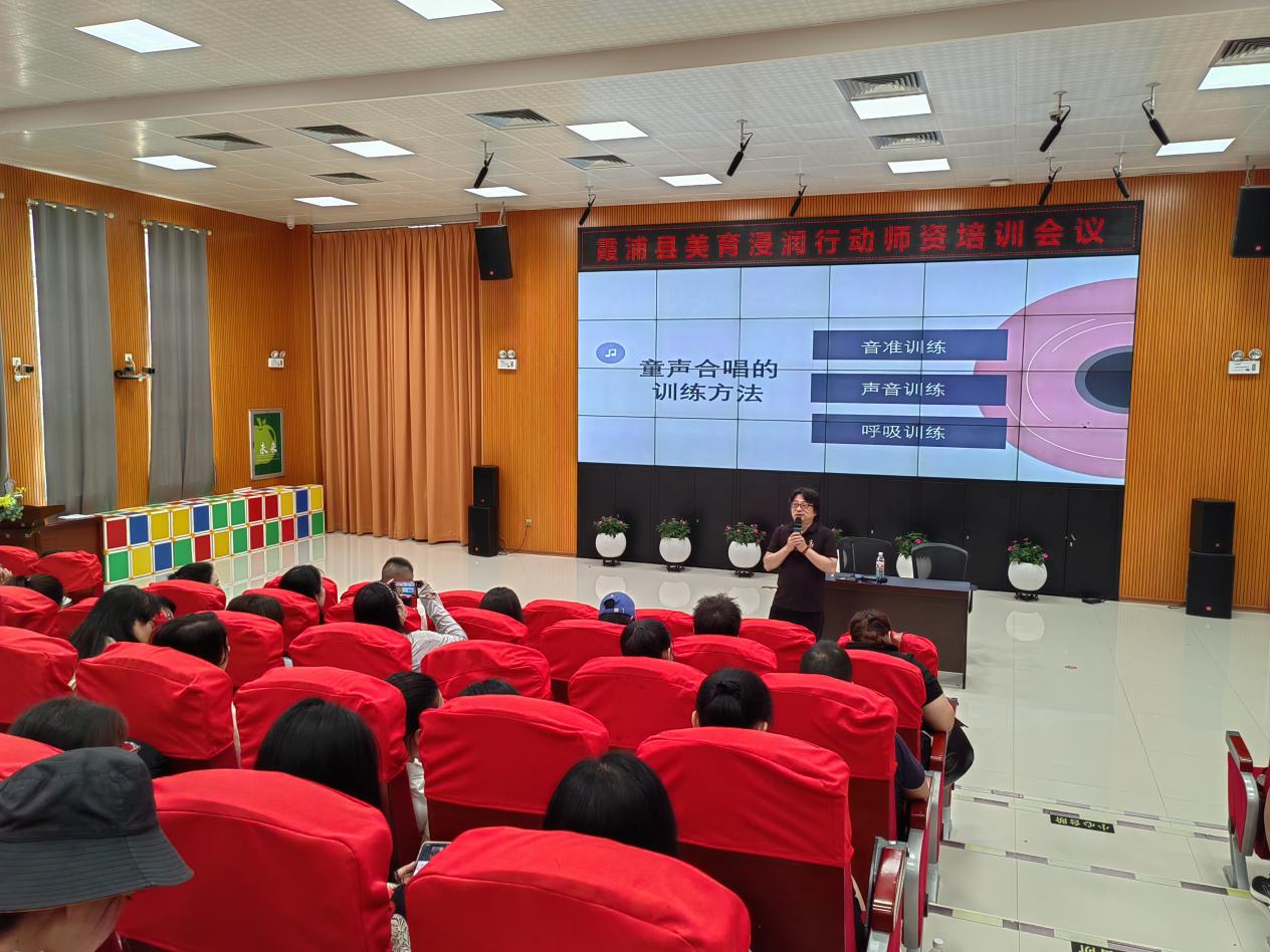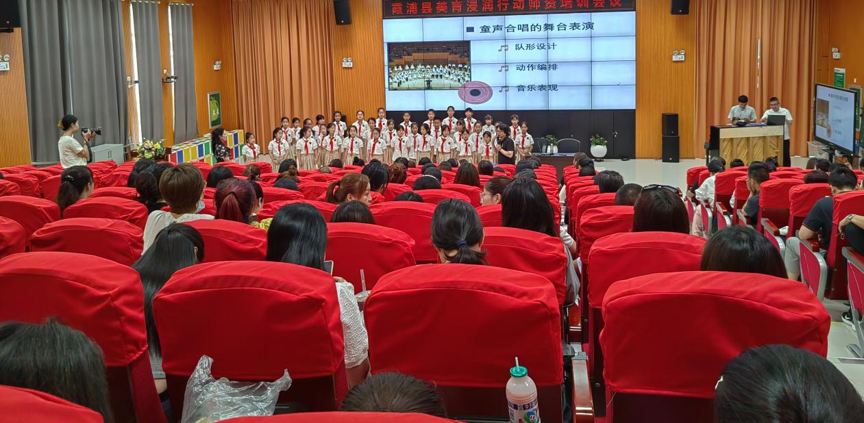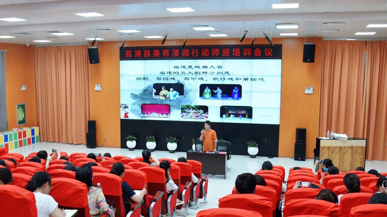 艺术学院“三下乡”团队联合霞浦县教育局在霞浦第四小学为全县美育教师举办三场美育师资培训讲座:艺术学院院长徐青开展的《童声合唱的排练与实践》主题讲座、特邀专家福建省音乐家协会副主席蒋舟开展的《少儿歌曲创作与演唱的时代特征》主题讲座以及我院青年教师、非遗传承人林特开展的《戏韵永流芳·美育润心田——中小学戏曲社团的建设》主题讲座。师资培训活动不仅为霞浦县全县美育教师提供了美育专业现场学习的机会,更为霞浦县的美育工作发展提供了新的思路和见解。