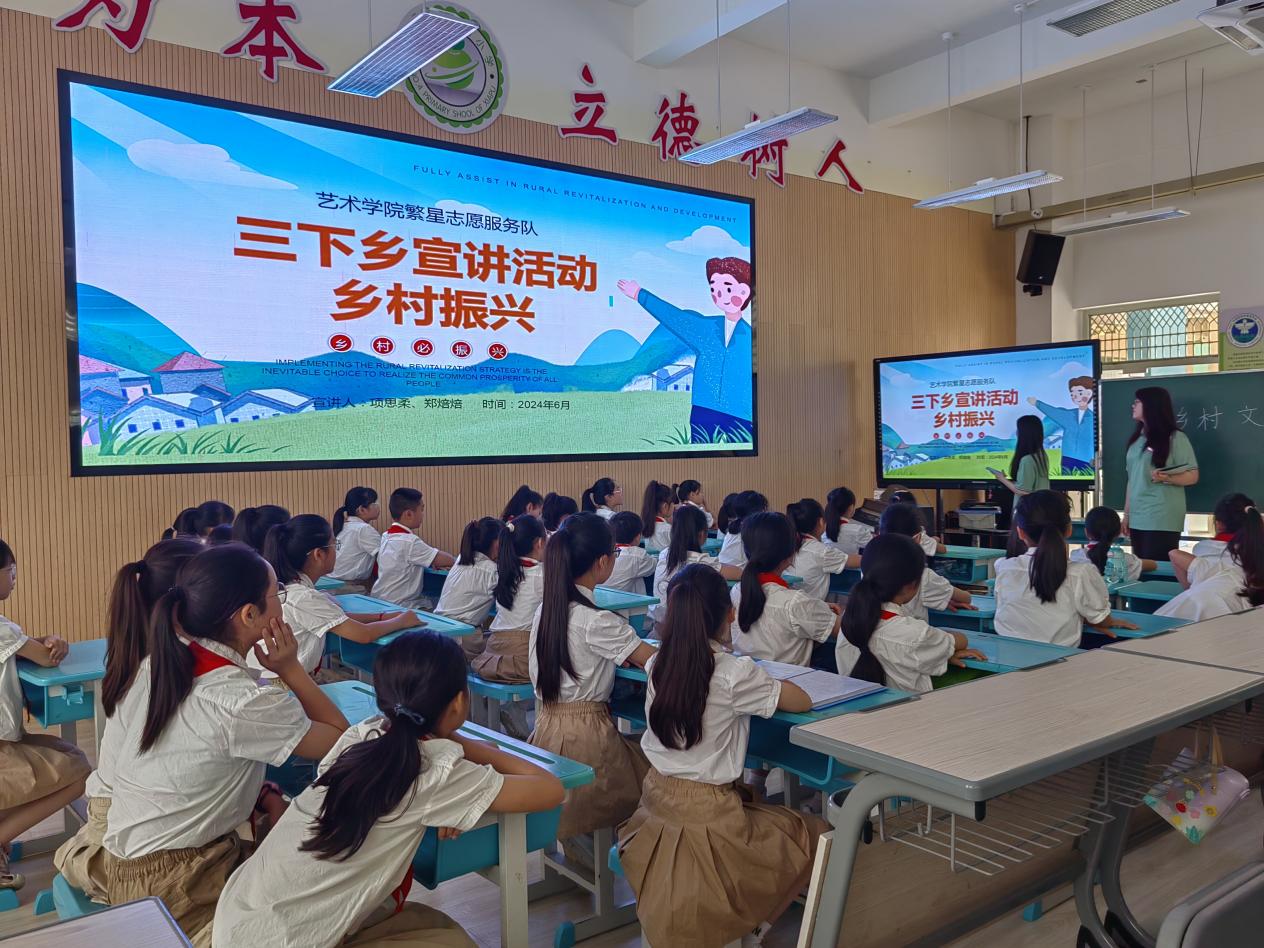 联合开展暑期艺术夏令营美育活动。举办大学生与小学生“三下乡”“手拉手”共建帮扶行动,在霞浦县第四小学开展乡村文化振兴主题教育展示微党课活动和资助乡村行主题活动。由大赢家体育app下载艺术学院青年主题教育宣讲团负责实施开展。宣讲团同学向小朋友展示了近年来我国乡村文化振兴取得的系列成果,并号召同学们要努力学习争做新时代有为一代!