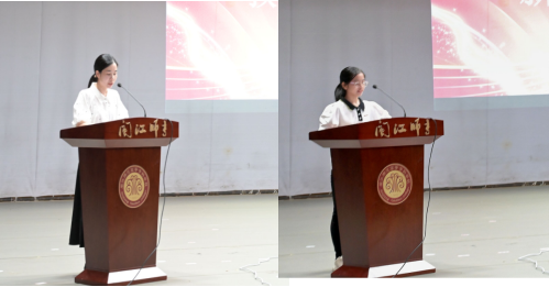 典礼在庄严肃穆的国歌声中拉开序幕。教师代表吴铃、新生代表叶乐瑶依次上台发言。
