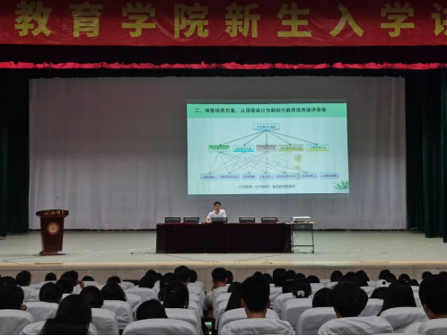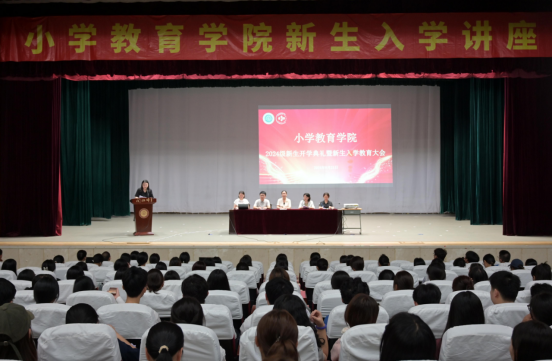 院长张宁代表学院热烈欢迎2024级全体新同学加入小学教育学院“大家庭”,并围绕“养浩然气,广仁爱心”的校训,从专业培养目标、专业知识技能、就业发展方向等方面鼓励新生求真学问、练真本领、长真才干,树立敢担当、能吃苦、肯奋斗的人生价值观,为今后职业生涯打下扎实的专业基础。