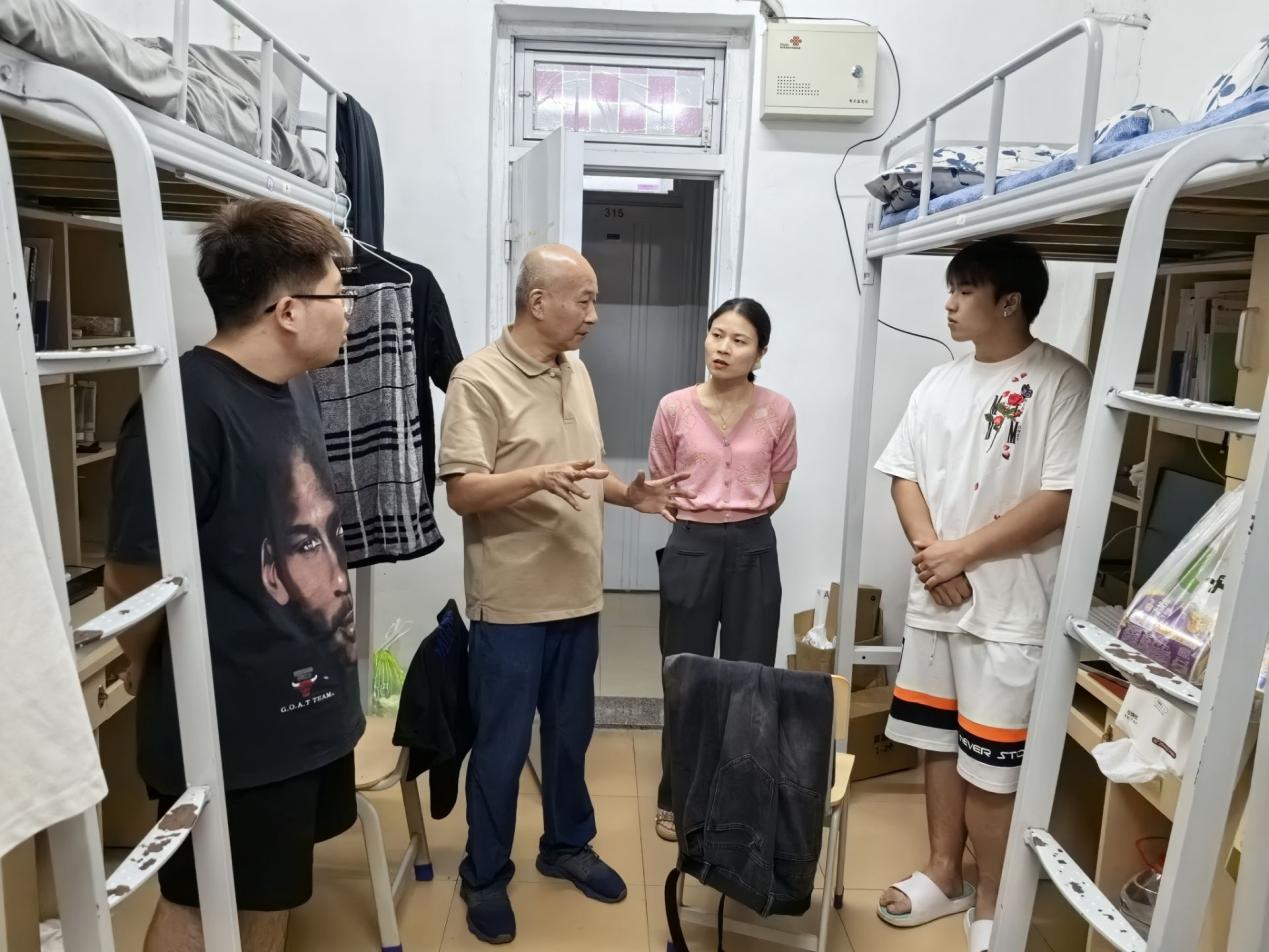 在新生宿舍,陈欣关心、询问了同学们目前日常学习生活的适应情况,认真倾听了同学们自入学以来的感受看法和意见建议,提醒保持宿舍卫生,注意宿舍安全,并鼓励同学们在新的环境中制定目标、努力学习、结交好友、锻炼能力,让自己变得更加优秀。在高年级宿舍,老师们重点就国庆假期安全出行、宿舍卫生、学风舍风等情况进行了督促。