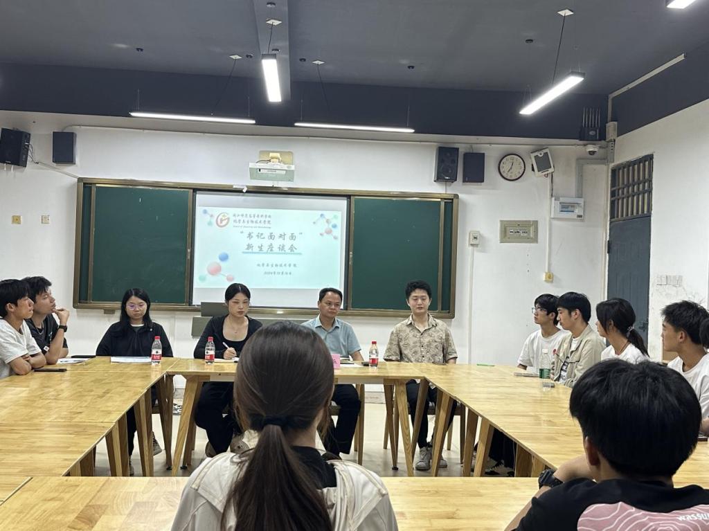 为深入了解福清校区新生在校情况,帮助新生更好地适应大学生活,10月16日下午,化学与生物技术学院在福清校区学生社区召开“书记面对面”新生座谈会。学院党总支书记王华、班主任娄子豪、蒋蓉芳以及2024级各班学生干部代表参加会议,会议由辅导员郑亦琅主持。