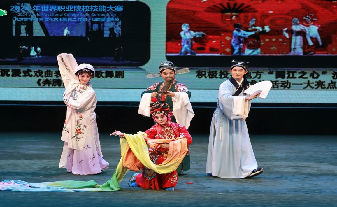 2024年世界职业院校技能大赛中职·戏曲表演赛项中,艺术学院闽剧专业学子杨明希、雷舒琳、周杰、孙泺彬四位同学,凭借精湛的各行当表演技艺和出色的舞台表现力,喜获银奖。