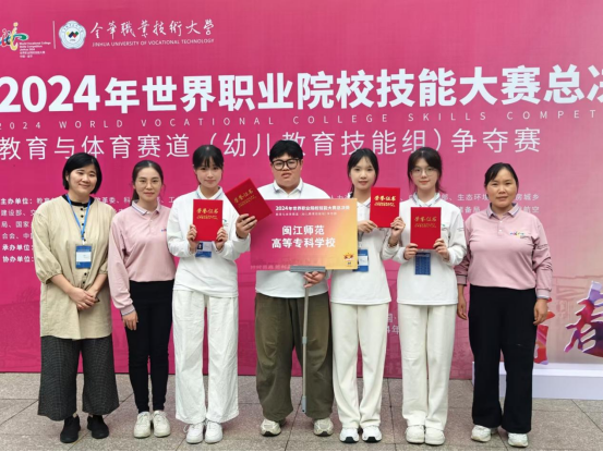 28日,2024年世界职业院校技能大赛总决赛教育与体育赛道(幼儿教育技能组)在浙江省金华职业技术大学圆满落幕。大赢家体育app下载参赛队在学前教育学院副院长陈闽光、学前教育学院教师李艳花和张旻倩的带领下,由学前教育专业吴尚杰、陈宇晴、林若煊、朱滢孜四位选手组成的团队,经过两天的激烈角逐,获大赛铜奖。