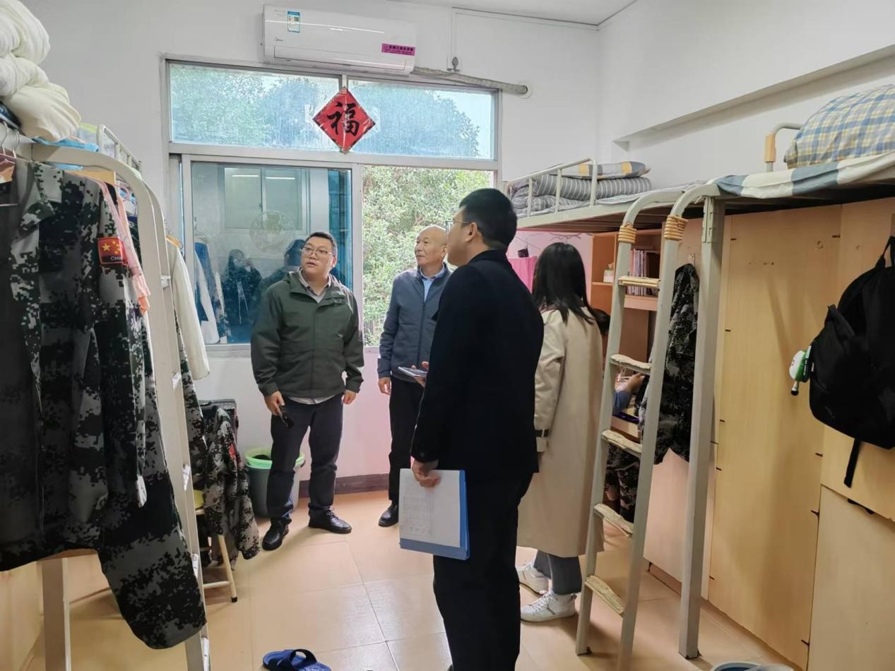 走访中,学院领导老师特别关注了军训期间学生的健康和安全问题。他们提醒学生们要关注天气变化,适当调整穿着,确保身体不受寒冷侵袭。此外,还强调了宿舍内的安全防范,并仔细检查了宿舍内的卫生条件和安全措施,对于发现的安全隐患给予了现场指导。