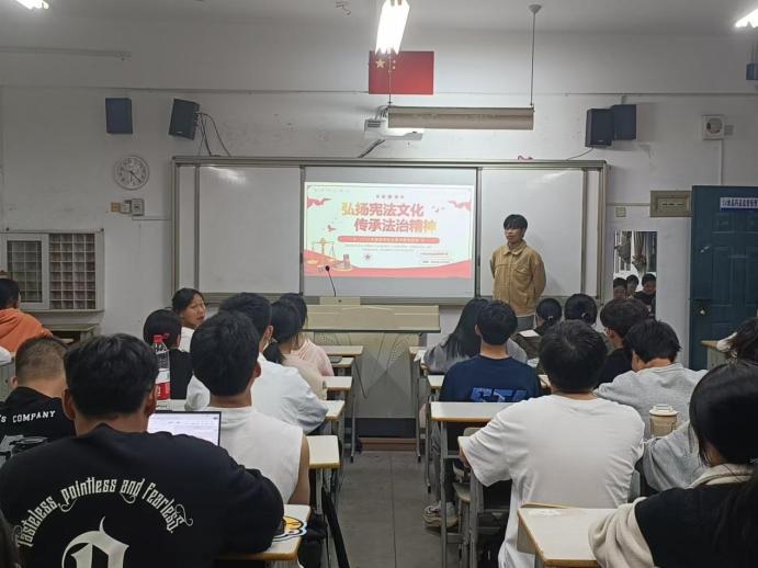 12月3日晚,学院各班开展宪法学习分享会以及主题班会。辅导员带领各班班委领学宪法、民法典等相关法律知识。在分享环节,学生们纷纷上台,分享了自己在学习宪法过程中的心得体会和感悟,就如何更好地将宪法精神融入日常生活提出了自己的见解和建议。