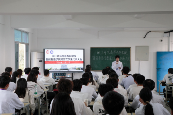 12月11日下午,智能制造学院第三次学生代表大会在仓山校区17号楼301教室召开。学院党总支副书记吕志达、团委书记季昌文、团委委员王淑霞出席会议,62名学生代表参加大会。大会由学生代表胡洛宁主持。