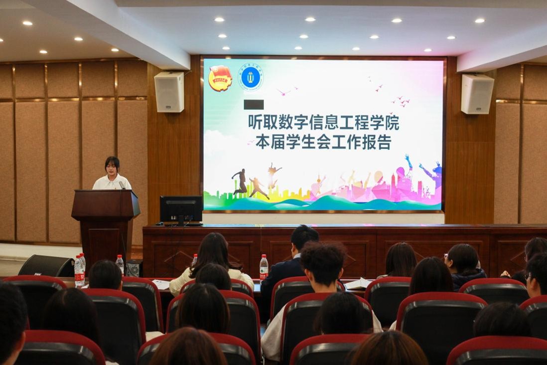 学生代表林若莹同学向大会作报告。报告从思想引领、学风建设、权益维护、学生活动等方面总结了上一学年学院学生组织工作,并对下一年的工作进行了展望,表示院学生会将紧跟时代步伐,创新工作思路,塑造学生会服务新品牌,展现昂扬向上的精神风貌。
