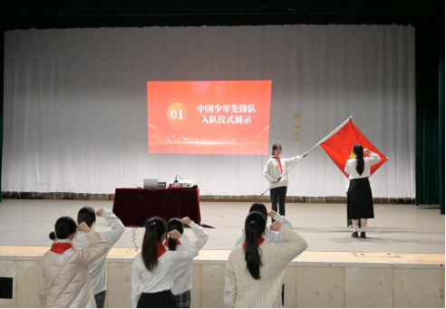 会议伊始为中国少年先锋队入队仪式展示,同学们以极具感染力的精神风貌,彰显着对中国少年先锋队的崇高敬意与深切认同。