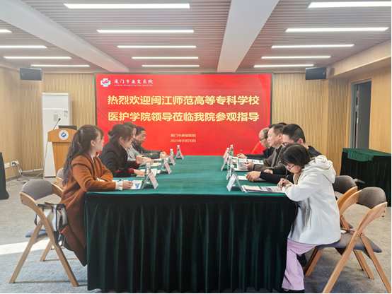 随后,教师团队一行前往厦门市康复医院并进行了座谈。座谈会上,院方表示,将全力支持学校的实习基地建设,为学生提供更多实践机会,共同提高学生的实践能力和职业素养。
