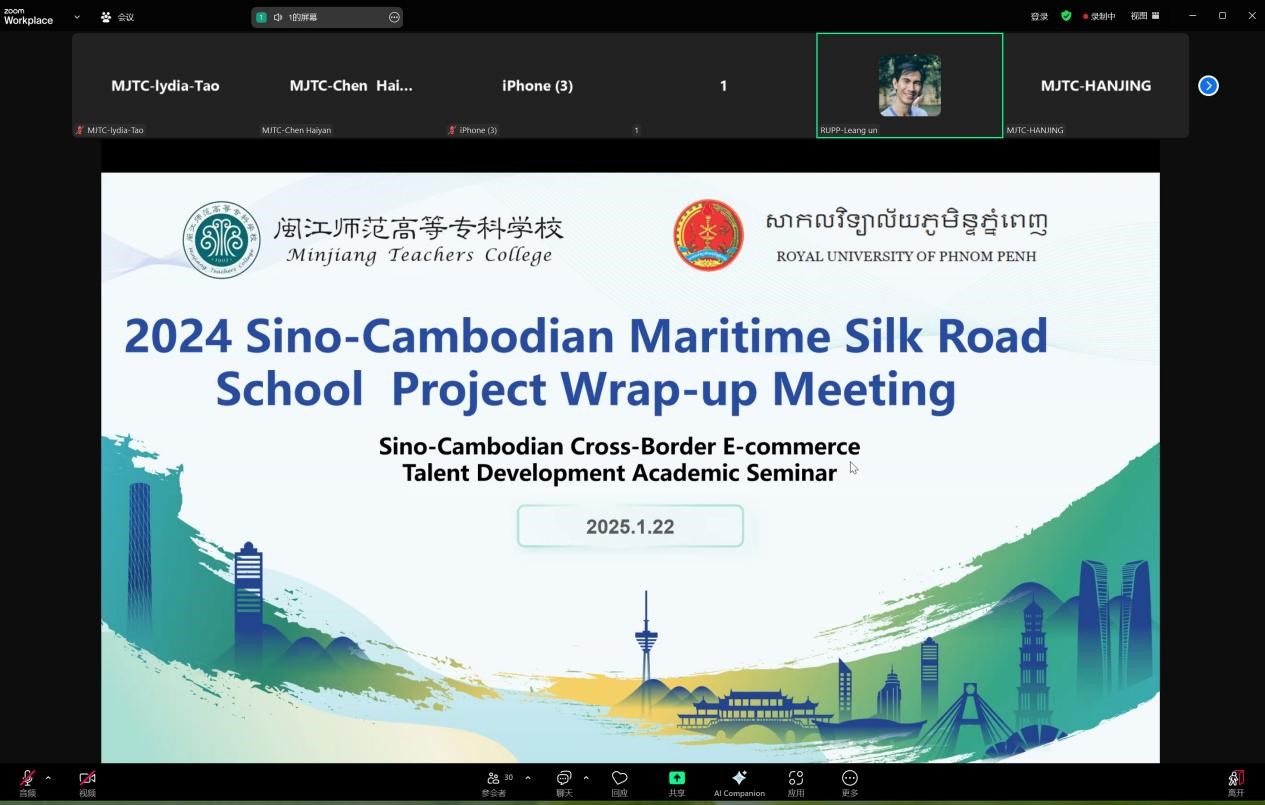 本次会议不仅是对2024年度中柬海丝学院学习项目的总结,更是对未来中柬职业教育合作的展望。以此为契机,外语商贸学院将继续促进职业教育“一带一路”国际合作,写好中柬海丝学院合作新篇章,为构建人类命运共同体贡献职教智慧和力量。