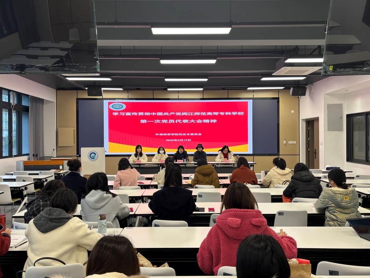 2月19日下午,外语商贸学院党总支学习宣传贯彻学校第一次党员代表大会精神,学院全体党员和群众代表参加本次学习,会议由学院党总支书记林锦芯主持。