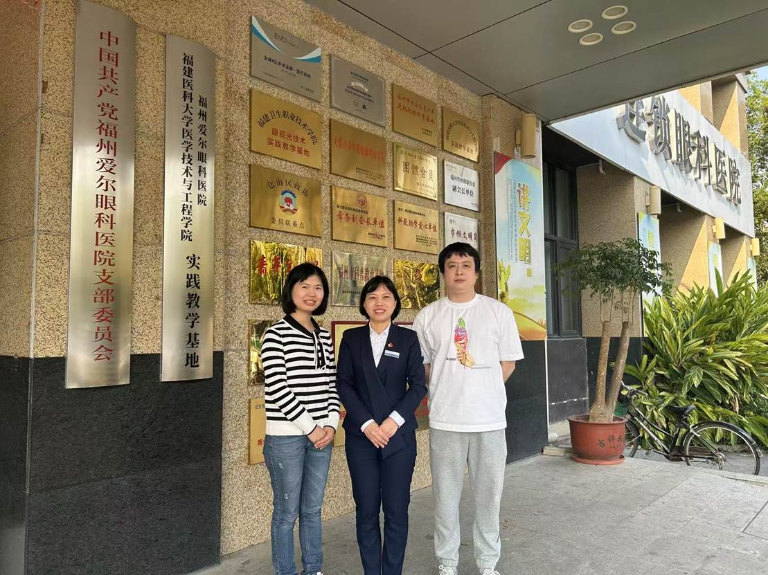 3月25日,医护学院护理教研室张剑老师、颜超老师一行前往福州爱尔眼科医院(总院区)开展访企拓岗调研活动。福州爱尔眼科护理部主任姚丹和人事科主任丁丽清热情接待了调研团队。