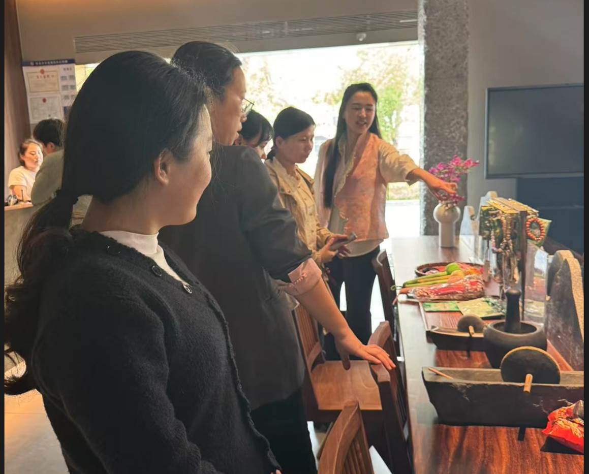 在善养心堂中医馆,老师们参观了中医诊疗区、善养茶坊、食养厨房等区域,与善养心堂负责人共同探讨如何培养既精通中药学知识,又能传承和弘扬中医药文化的复合型人才。双方一致认为,应加强实践教学环节,让学生在实践中加深对中药应用的理解,提升专业技能。此外,双方还在创新创业项目方面进行了沟通交流,鼓励学生探索中医药与现代健康产业融合的新模式。