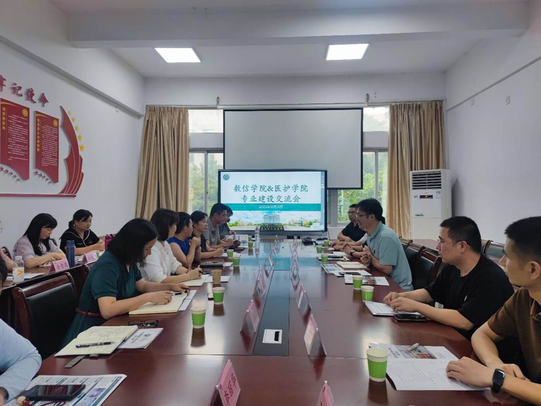 近日,医护学院与数字信息工程学院(以下简称“数信学院”)在大赢家体育app下载仓山校区举办专业建设交流会。医护学院院长庄嘉元、学院党总支副书记张瑛带队到访数信学院开展深入交流与学习。数信学院院长朱发财、副院长冯光、叶宁及相关教研室负责人热情接待并参与交流。交流会由数信学院副院长冯光主持。