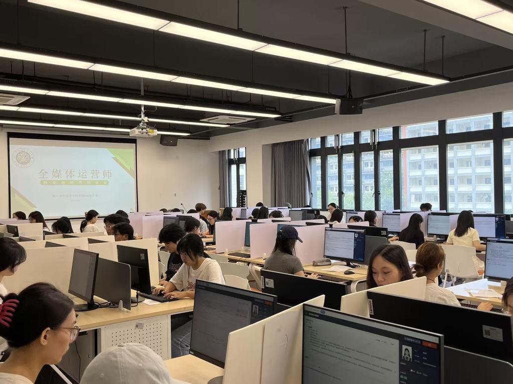 近日,外语商贸学院顺利完成互联网营销师和全媒体运营师两项职业技能等级证书考试,标志着2025年“课证融通”改革项目圆满结束。