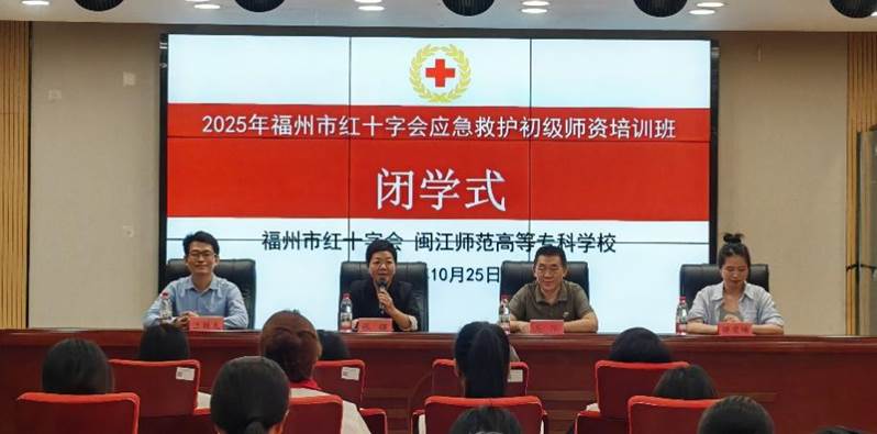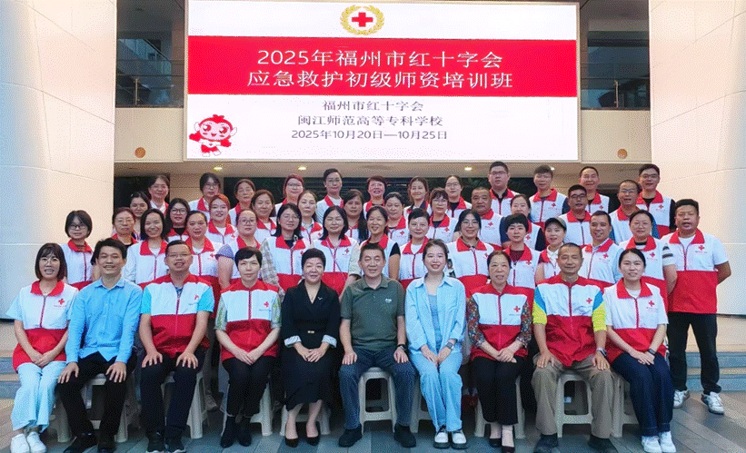 10月20日至25日,由福州市红十字会主办、大赢家体育app下载(以下简称“闽江师专”)承办的“2025年福州市红十字会应急救护初级师资培训班”在闽江师专红十字应急救护培训基地顺利举办。来自福州各县区红十字会的40名学员参加培训。福州市红十字会及闽江师专医护学院相关领导出席开班仪式。