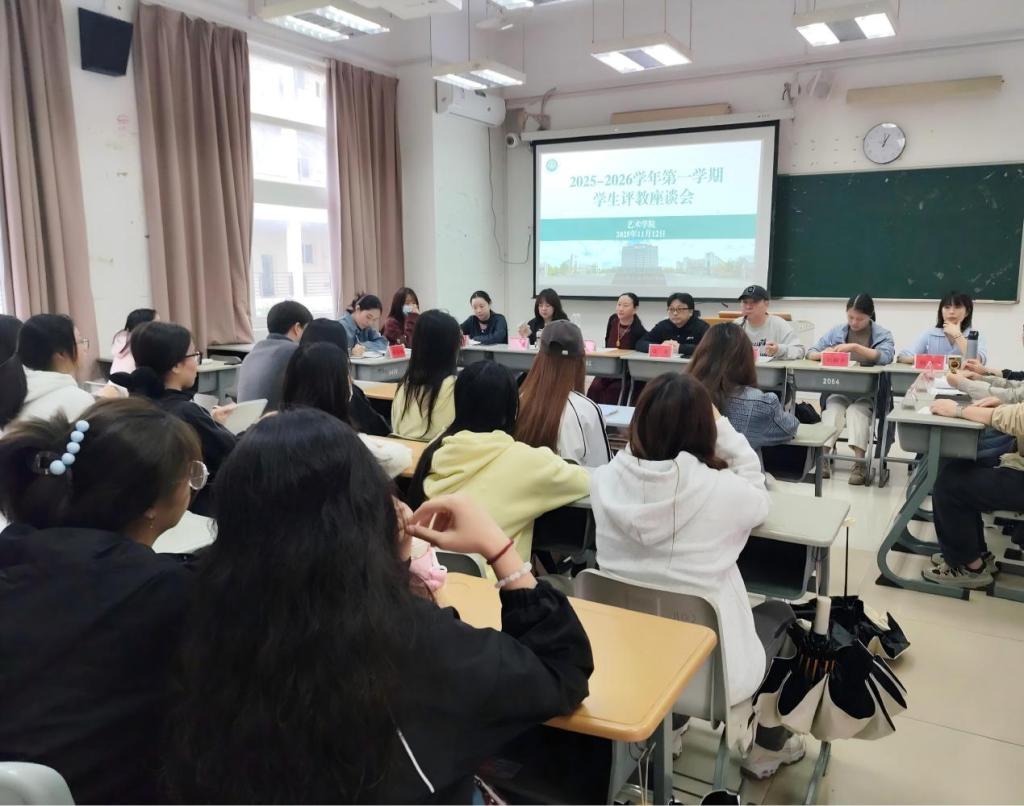 11月12日中午,艺术学院在旗山校区2号楼2012教室组织召开2025-2026学年第一学期学生评教座谈会。会议由学院副院长陈洪翔主持,院长徐青、各教研室主任、辅导员、教学秘书及各班级学习委员共同参会。