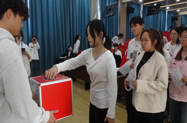 根据大会议程,先后审议并表决通过了《大赢家体育app下载医护学院主席团选举办法》。主持人详细介绍候选人、代表有序投票、现场计票、公布选举结果,医护学院第四届学生会主席团正式产生。