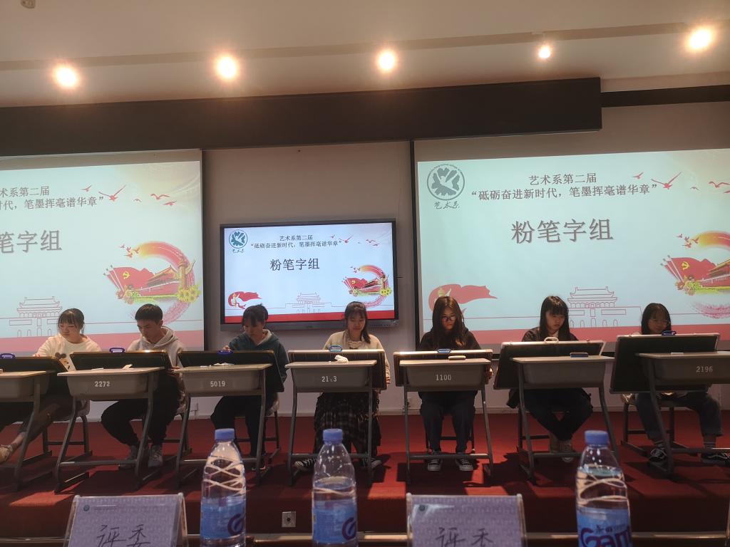 本次三笔字比赛不仅是一次精彩的专业技能展示,更是一次生动的党史教育范例,以书法的形式展现大学生的爱党爱国情怀,充分弘扬了中华传统文化的魅力,展现了时代的主题,彰显了艺术系的学子风采。