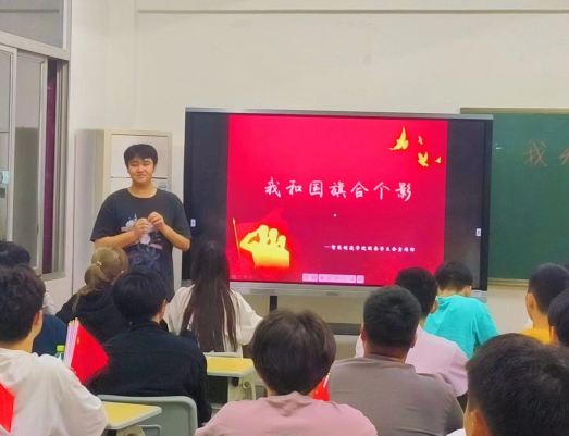 在新中国成立73周年华诞、党的二十大即将召开之际,为激发广大学生的爱国热情,厚植爱国主义精神,唱响爱党、爱祖国、爱家乡的主旋律,表达对伟大祖国的美好祝福,10月10日晚,智能制造学院在17号楼202教室开展“我和国旗合个影”主题教育活动。