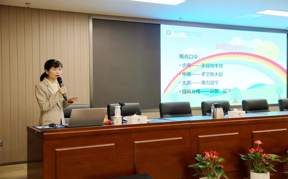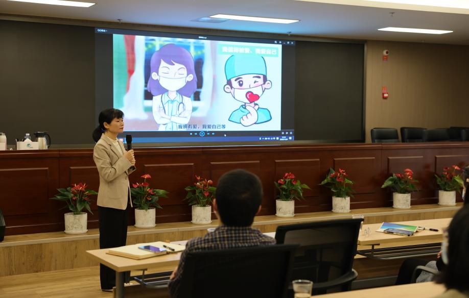 讲座开始,谢姗姗以“致敬的掌声”热身活动向福州新区集团抗疫志愿者团队表示敬意。她通过疫情心理状态评估,让大家更加了解自己目前的心理健康水平;在“雨中人绘画减压”、“蝴蝶拍减压”“正念冥想”等互动式体验中,带领学员一同体验缓解压力和调节情绪的多种心理技术;在“疫情防控期间如何调整认知”、 疫情防控期间睡眠健康与管理”专题中,以案例的形式讲述了情绪ABC理论在日常的使用方法、睡眠的影响以及如何管理睡眠。
