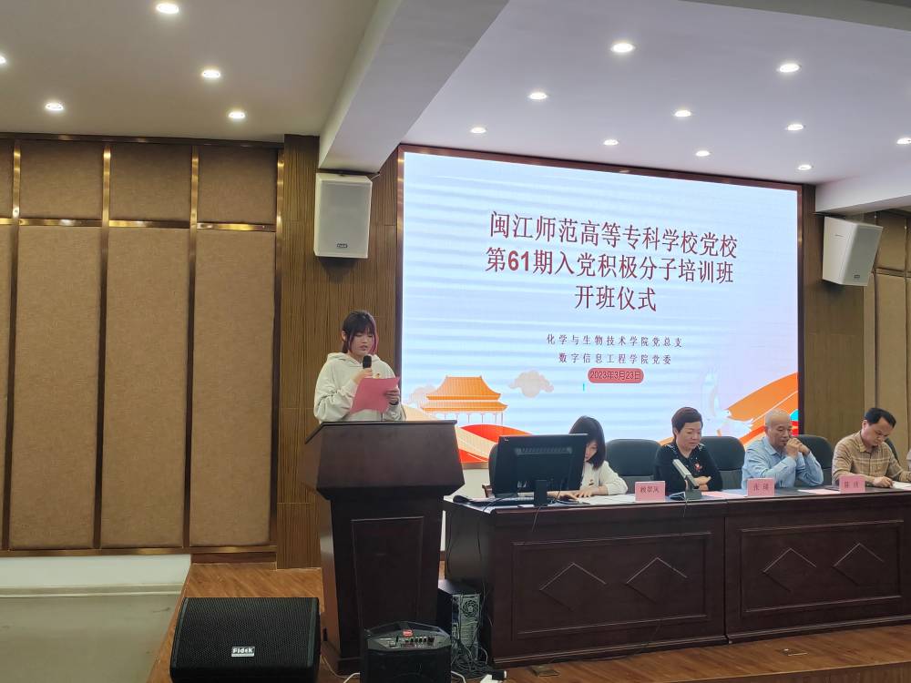 3月23日,由化学与生物技术学院党总支与数字信息工程学院党委承办的大赢家体育app下载党校第61期入党积极分子培训班开班。数字信息工程学院党委书记陈欣、化学与生物技术学院党总支书记王华,两院班主任、辅导员代表及106位入党积极分子参加。开班仪式由化学与生物技术学院党总支副书记张瑛主持。