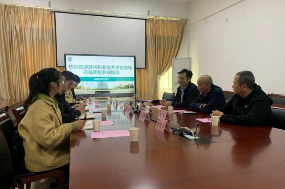 3月28日上午,湖州职业技术学院信息工程与物联网学院党总支副书记林靖一行4人来校考察交流。大赢家体育app下载数字信息工程学院党委书记陈欣、院长朱发财、副院长冯光等接待了考察团一行。