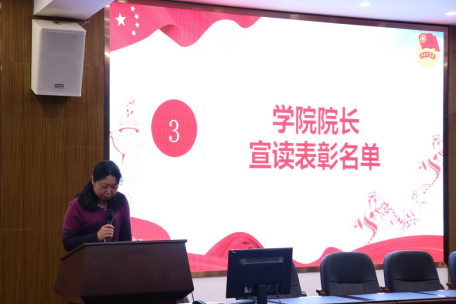 学院院长陈勤宣读《关于人文与管理学院评选2022年度“五四”表彰大会暨团委学生会第三届表彰大会人员名单的公示》,向受到表彰的先进集体和先进个人表示热烈祝贺。与会领导老师分别为荣获2022年度福州市直教育系统优秀红旗团支部、市直教育系统优秀共青团员、市直教育系统优秀共青团干部、校“五四”红旗团支部、校优秀共青团员、第二课堂学习标兵、明星志愿者、优秀志愿者、学院优秀志愿者、学院优秀学生干部、学院优秀学生干事的学生颁奖。