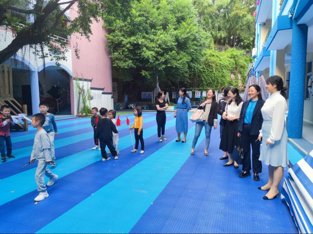 林毓君一行在福建省儿童保育院香缇幼儿园园长余志敏、福州海军幼儿园园长王蔚华、福州市台江区鳌峰幼儿园园长陈雪梅的陪同下,分别参观了三所园所户外活动场所及园内功能室。在调研座谈会上,学院向园方深度了解各园办园规模、办园特色、用人需求等情况,同时了解了园方对人才培养方案的意见及合作开展见习实习等。林毓君表示,学前教育专业人才培养将紧跟园方需求,同时希望双方在人才培养、实习就业等方面开展更深入的交流与合作,更好地服务地方学前教育的高质量发展。